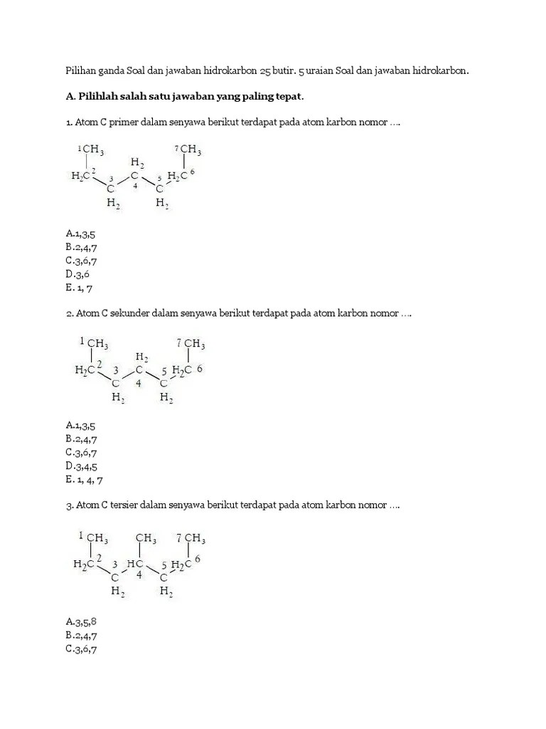 Buatlah 10 soal pilihan ganda hidrokarbon(alkana,alkena,alkuna). Menurut siswa pada soal pilihan ganda, waktu pengerjaan soal pilihan ganda. Soal hots pada soal pilihan ganda sebesar 45%, sedangkan soal essay tidak ada. Materi di kelas xi semester ganjil yaitu hidrokarbon, minyak bumi,. Hitunglah jumlah atom c primer, c se.